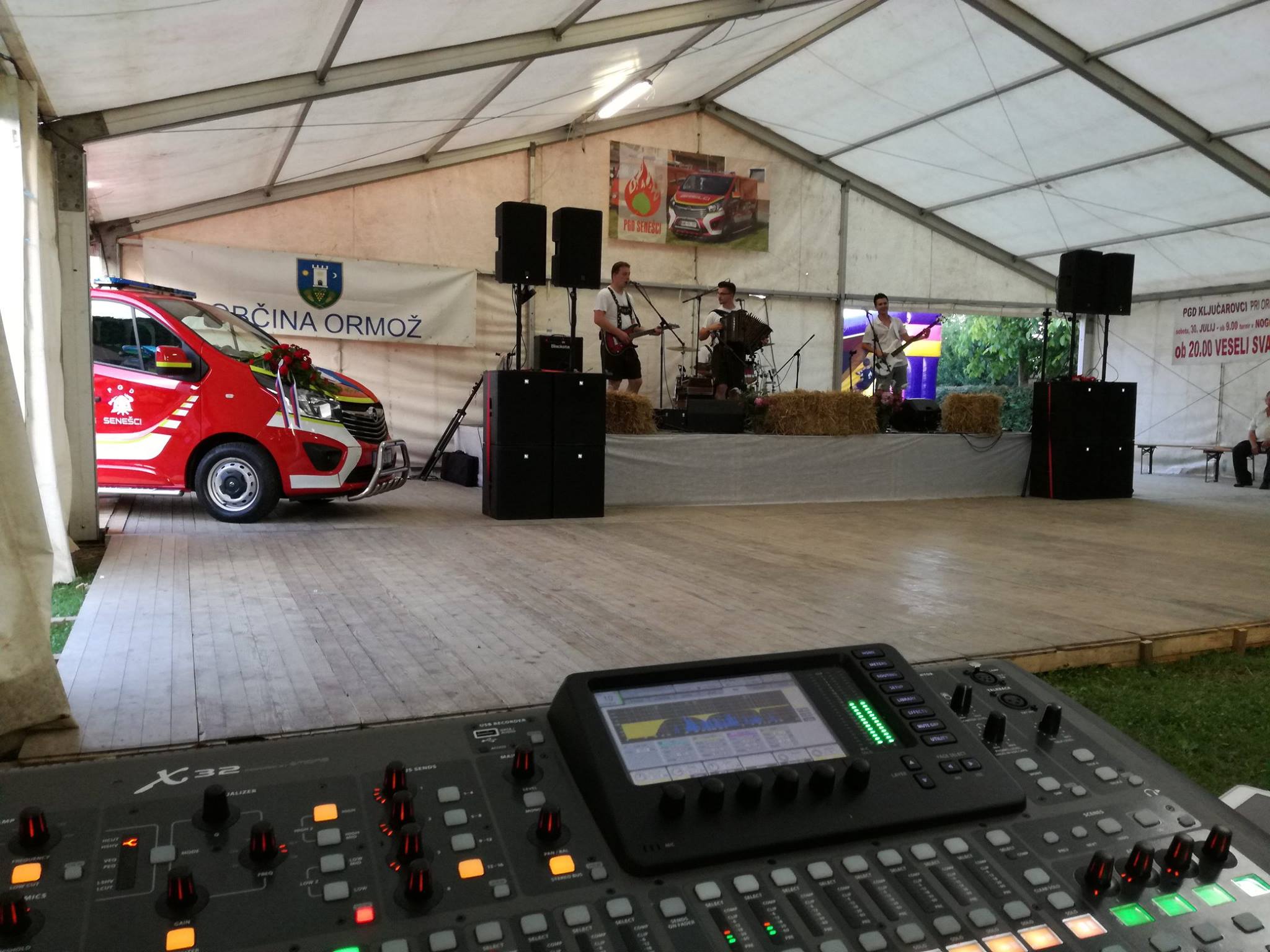 Uporabljamo ozvočenje znamke Electro-Voice, ki se uvršča med najboljše znamke na svetu. Le-to se odlično ujame v kombinaciji z digitalnimi mešalnimi mizami Behringer in mikrofoni znamk Rode, Shure, Akg, Sennheiser, Electro-Voice, Lewitt…